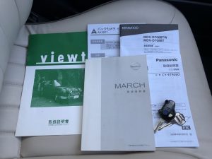 取扱説明書、キーレスリモコン+予備キー、車検整備2年付き。