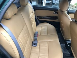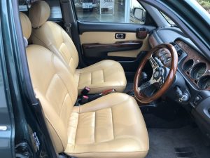 内装です。高級感のあるライトブラウンの本革シート&ドアトリムを着用しています。