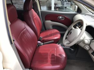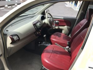 グレーベージュを基調としたインテリアに鮮やかな赤色のレザー調シートを着用しました!