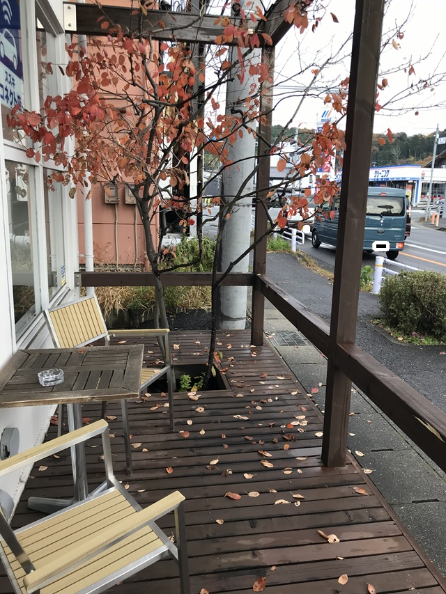 外の喫煙コーナーにある木が寂しくなり、葉っぱがたくさん落ちているのを見て晩秋を感じます。