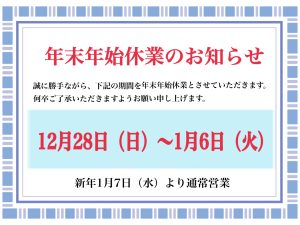 瑞浪本店:2025年12月29日(月)~2026年1月5日(月)
