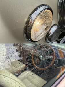 窓越しから見える車内も、ボディに残る雨粒もビュートの丸みのあるクラシックなフォルムをより柔らかく、しっとりした世界観を醸し出します!